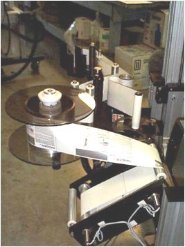 The UT2 LLS series print and apply systems consist of the AC or the Servo labelling head, depending on speed and accuracy of placement required, and the Short LooseLoop module, integrated with an OEM print engine Zebra PAX, SATO 8400 series or Datamax DMX A-Class series thermal direct/thermal transfer printer. The thermal label stock is printed on line by sending label format and information (date, time, lot number, bar code, shipping destination, etc.) from an on the floor PC or a hand held controller. The printing of "buffer" labels is controlled by the Loose Loop Module.