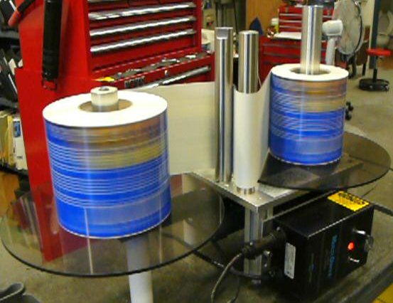 The "High Speed Label Roll Rewinder" allows for rewinding label rolls up to 300mm (12") in diameter. Rolls can be rewound to switch both "leading" and "trailing" ends of the label, and change rolls from "inside wind" to "outside wind", and vice versa.