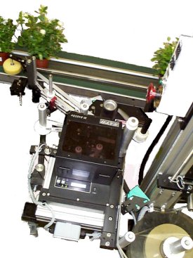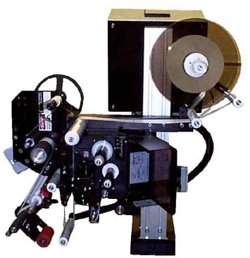 The UT2 LLS series print and apply systems consist of the AC or the Servo labelling head, depending on speed and accuracy of placement required, and the Short LooseLoop module, integrated with an OEM print engine Zebra PAX, SATO 8400 series or Datamax DMX A-Class series thermal direct/thermal transfer printer. The thermal label stock is printed on line by sending label format and information (date, time, lot number, bar code, shipping destination, etc.) from an on the floor PC or a hand held controller. The printing of "buffer" labels is controlled by the Loose Loop Module.