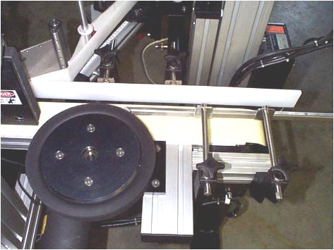 This module is also called the Spacing Wheel. This is used to assist in the wipe down of the label (for example, a label applied in a recessed product), or as a device to assist in generating space between the products so as to avoid back log of the labelling system.